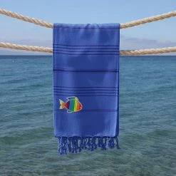 Linum Home Textiles Turkish Cotton Summer Fun Sparkling Rainbow Fish Pestemal Beach Towel Turquoise