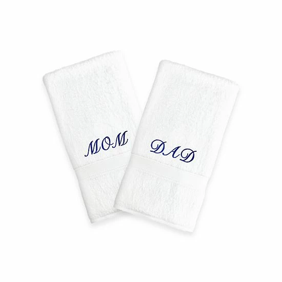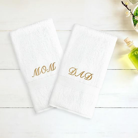Enjoy the beautiful design of these Linum Home Textiles “Mom & Dad” hand towels.
