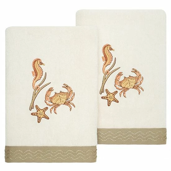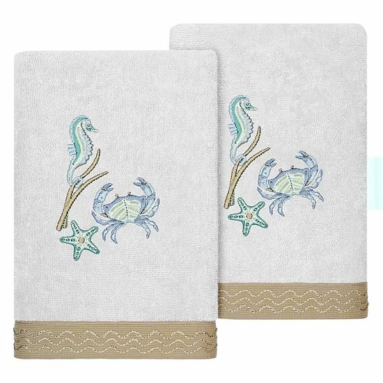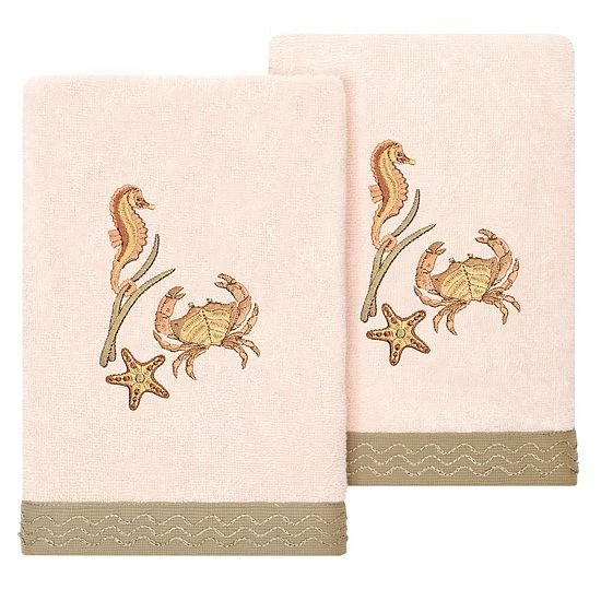 Elevate the look of your space with this Linum Home Textiles Turkish Cotton Aaron 2-piece Embellished Hand Towel Set.