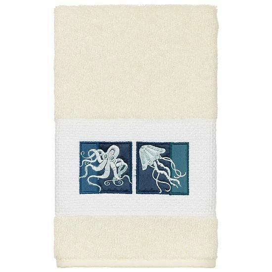 Add a little extra flair to your bathroom with this embellished hand towel from Linum Home Textiles.