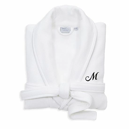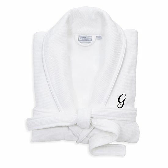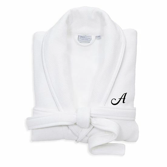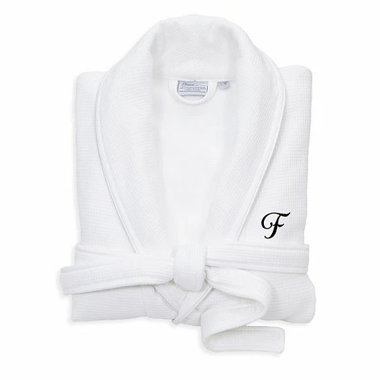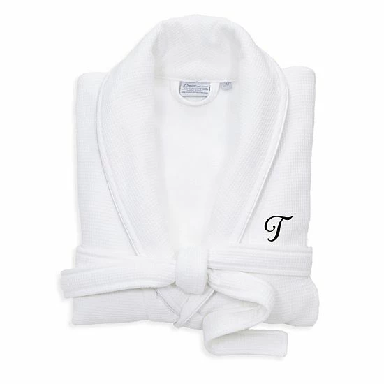 Linum Home Textiles Turkish Cotton Personalized Satin Piped Trim Waffle Terry White Bathrobe
