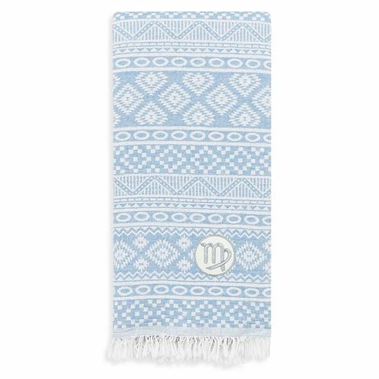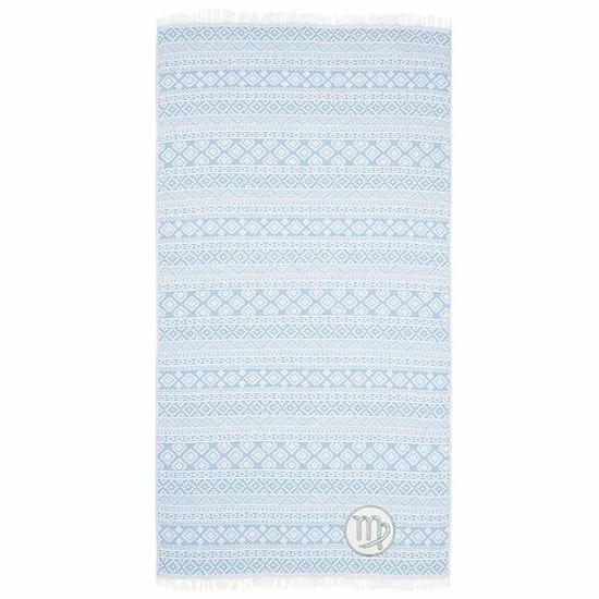 Linum Home Textiles Turkish Cotton Sea Breeze Horoscope Virgo Pestemal Beach Towel Navy Virgo