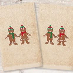 Linum Home Textiles Christmas 2-pack Gingerbread Embroidered Luxury Turkish Cotton Hand Towels Sand