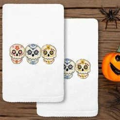 Linum Home Textiles Harvest Bounty Embroidered Luxury Turkish Cotton 2-pack Hand Towel Set White